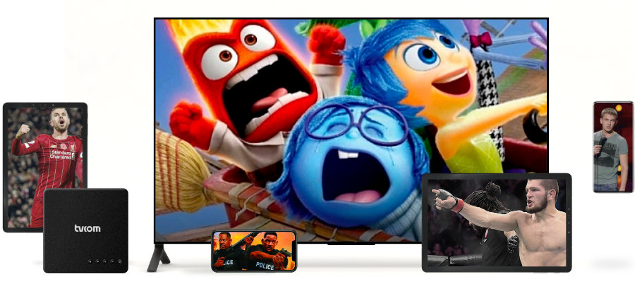 Не нужно покупать дополнительное оборудование. Просто установи приложение и смотри на смартфоне, планшете и Smart TV или сразу на трех устройствах за одну абонплату. Работает в любом месте, где есть доступ к интернету. Смотри телевидение как хочешь, где хочешь и когда хочешь – прямая трансляция Премьер лиги на телефоне по дороге на работу или кино дома на большом