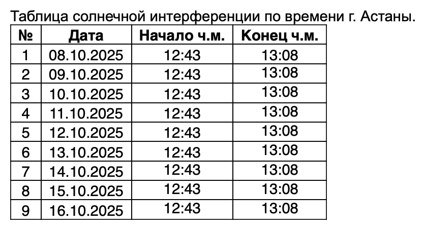 С 08 по 16 октября 2025г. будет проходить осенняя солнечная интерференция на КА «KazSat-3».