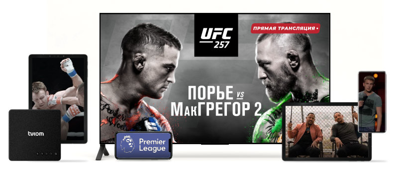 Премьеры кино, сериалы, новый юмор, большой выбор детских и познавательных каналов, а также спортивные события и UFC в прямом эфире.